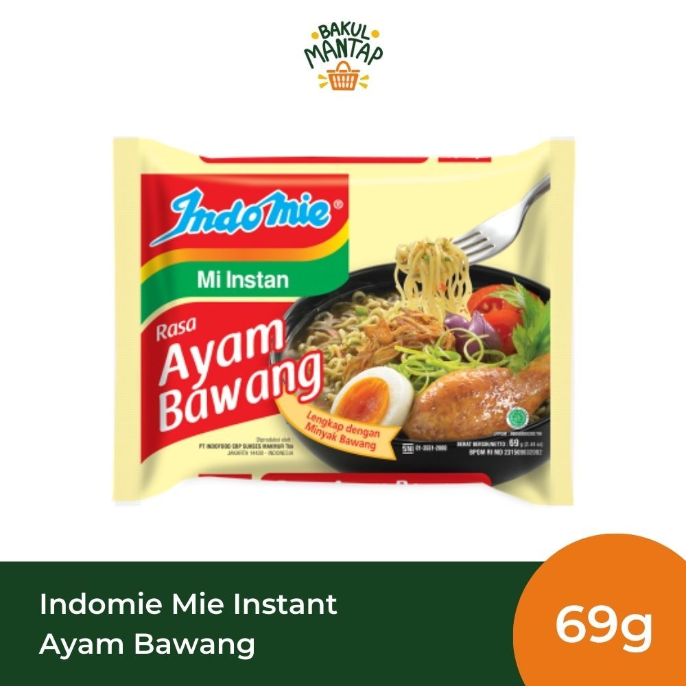 Indomie Mi Instan Ayam Bawang 69 g adalah salah satu jenis mi instan dengan varian kuah. Dibuat dengan menggunakan tepung terigu pilihan berkualitas tinggi, yang diolah secara higienis menggunakan teknologi modern, sehingga menghasilkan mi instan yang berkualitas tinggi dan rasa yang lezat. Diperkaya dengan berbagai vitamin dan mineral yang baik untuk tubuh. Dengan bumbu yang dibuat dari rempah rempah asli kekayaan nusantara sehingga menghasilkan rasa yang khas dan kaya rasa. Perpaduan antara mie bertekstur lembut dan kenyal dengan kuah kaldu ayam dan rasa bawang yang gurih, menciptakan perpaduan yang nikmat dan aroma yang menggugah selera. Dikemas secara praktis dalam kemasan plastik yang terdapaat satu set mie dan bumbu di dalamnya. Dapat disajikan dalam waktu yang singkat dan praktis. Lebih nikmat disajikan saat cuaca dingin atau hujan.
