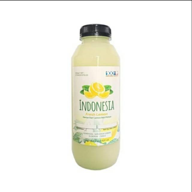 Indonesia fresh lemon tersedia dalam 2 ukuran, yaitu 500ml (setara buah lemon 2kg) dan 250ml (setara buah lemon 1kg).