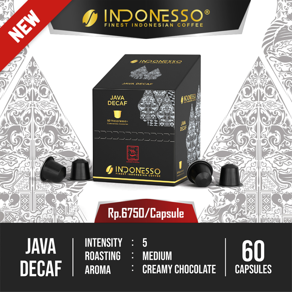 INDONESSO Office Box Java Decaf Specialty Coffee Capsules Compatible with Nespresso Machines / Kapsul Kopi
