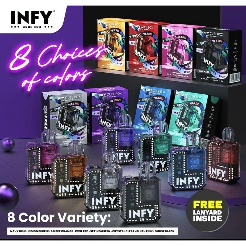 INFY Cube Box mengubah definisi portabilitas dan gaya. Desainnya yang ramping dan ringan sangat cocok digunakan saat bepergian, sementara kotak transparan dengan papan sirkuit yang terlihat memberikan sentuhan futuristik. Untuk kenyamanan tambahan, setiap INFY Cube Box dilengkapi dengan tali leher gradient gratis, memungkinkan Anda membawanya dengan nyaman di sekitar leher.