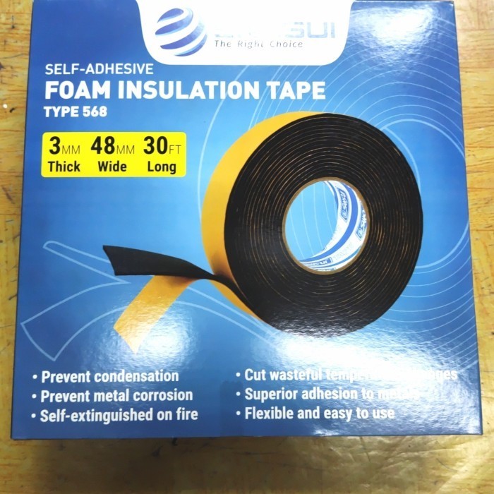 isolasi utk mengatasi kondensasi di instalasi semua pendingin. Tebal 3 mm, lebar 48 mm, panjang 30 feet, , sangat mudah di aplikasi kan. Kwalitas sangat baik