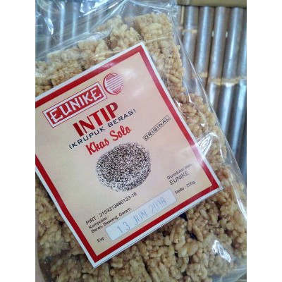 Intip adalah kerupuk yang terbuat dari kerak nasi yang ada di liwet an ibu ibu setelah memasak nasi, kerak tersebut dikeringkan dibawah sinar matahari kemudian digoreng dengan minyak panas. Karena inspirasi inilah kemudian muncul nya intip,