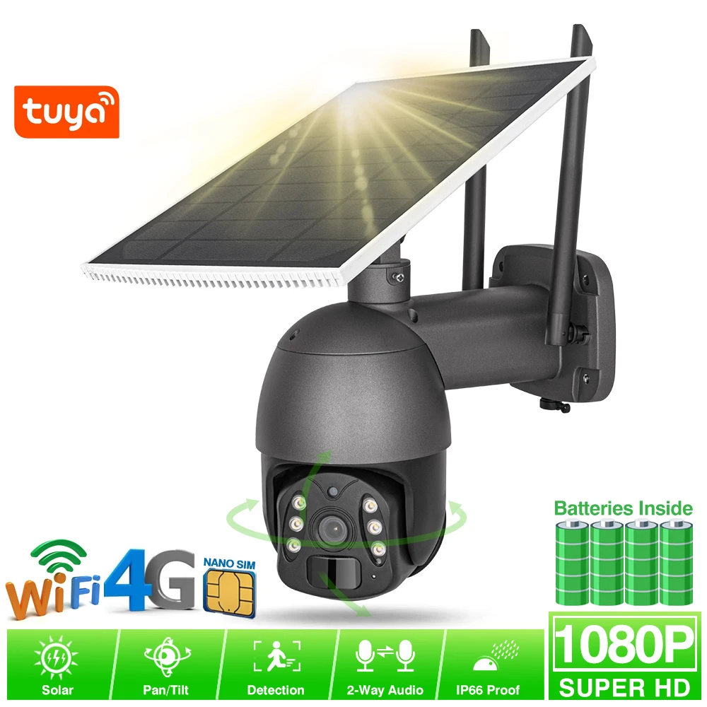 IP-камера видеонаблюдения VIKVIZ Tuya, 4G, Wi-Fi, SIM-карта, 1080P HD, с солнечной панелью, панорамированием и наклоном