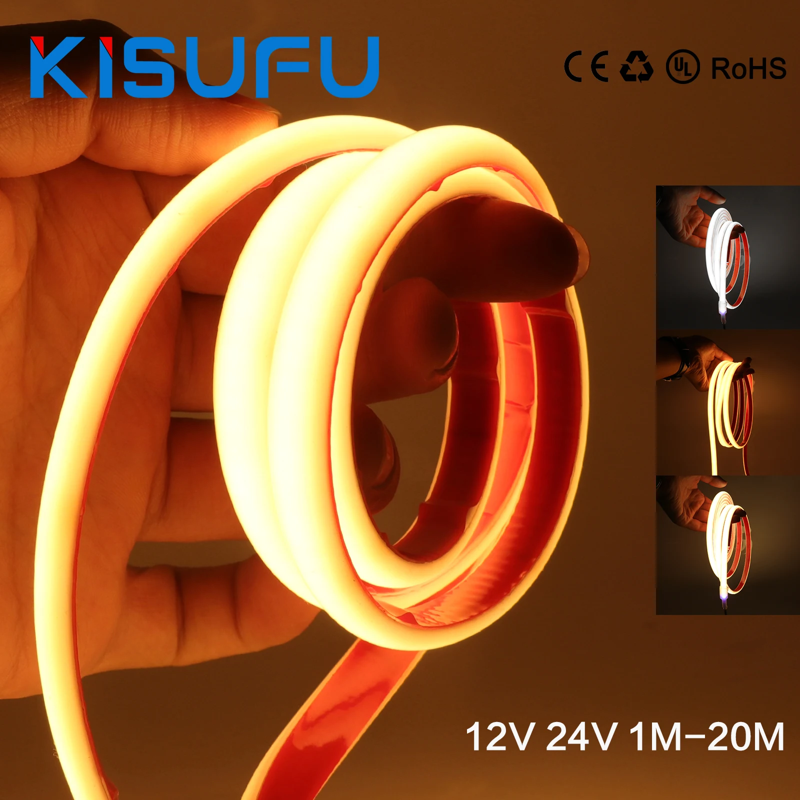 IP68 Водонепроницаемая светодиодная неоновая лента COB, самоклеящаяся, 12 В/24 В, 320 светодиодов/M, гибкая лента RA90, 3000K, 4000K, 6000K, лайнер, освещение, 10 м