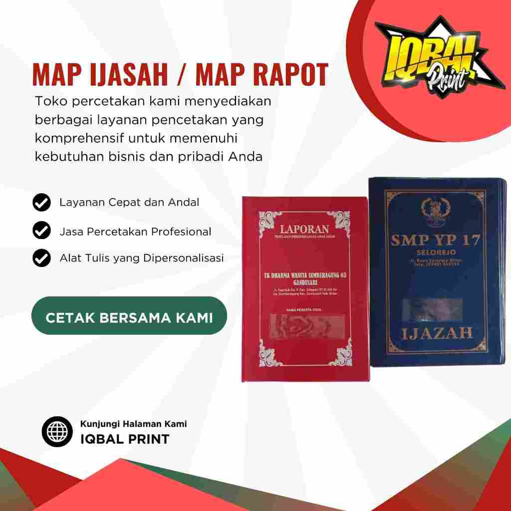 IQBAL PRINT SAMPUL MAP RAPORT MAP IJASAH SABLON MINIMAL 50 PCS ( PROSES MINIMAL 4 HARI - 7 HARI )