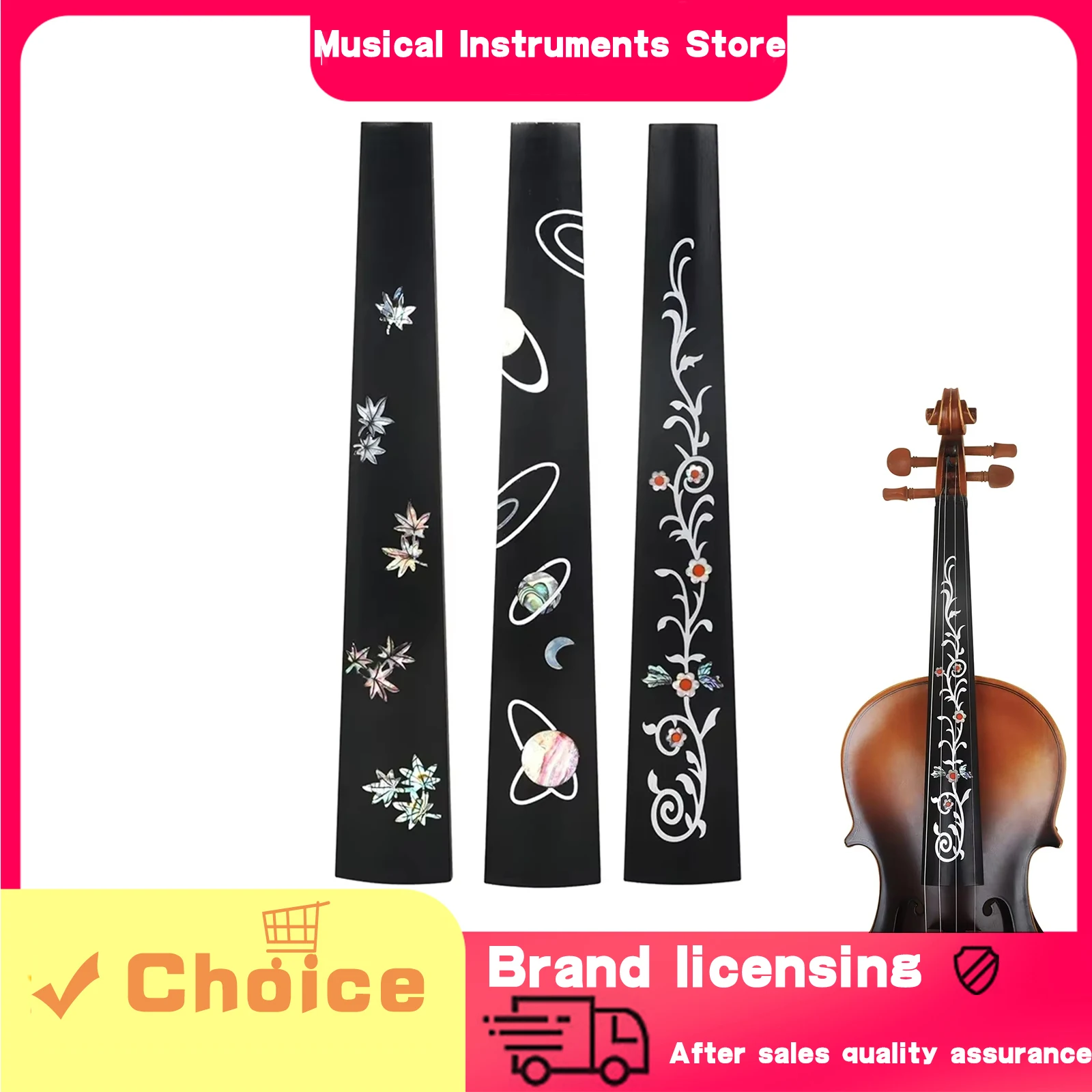 IRIN 4/4 Violin Fingerboard Ebony Board Colourful Patterns 27cm Colourful Shells With Hand Inlaid Carvings Violin Accessories
