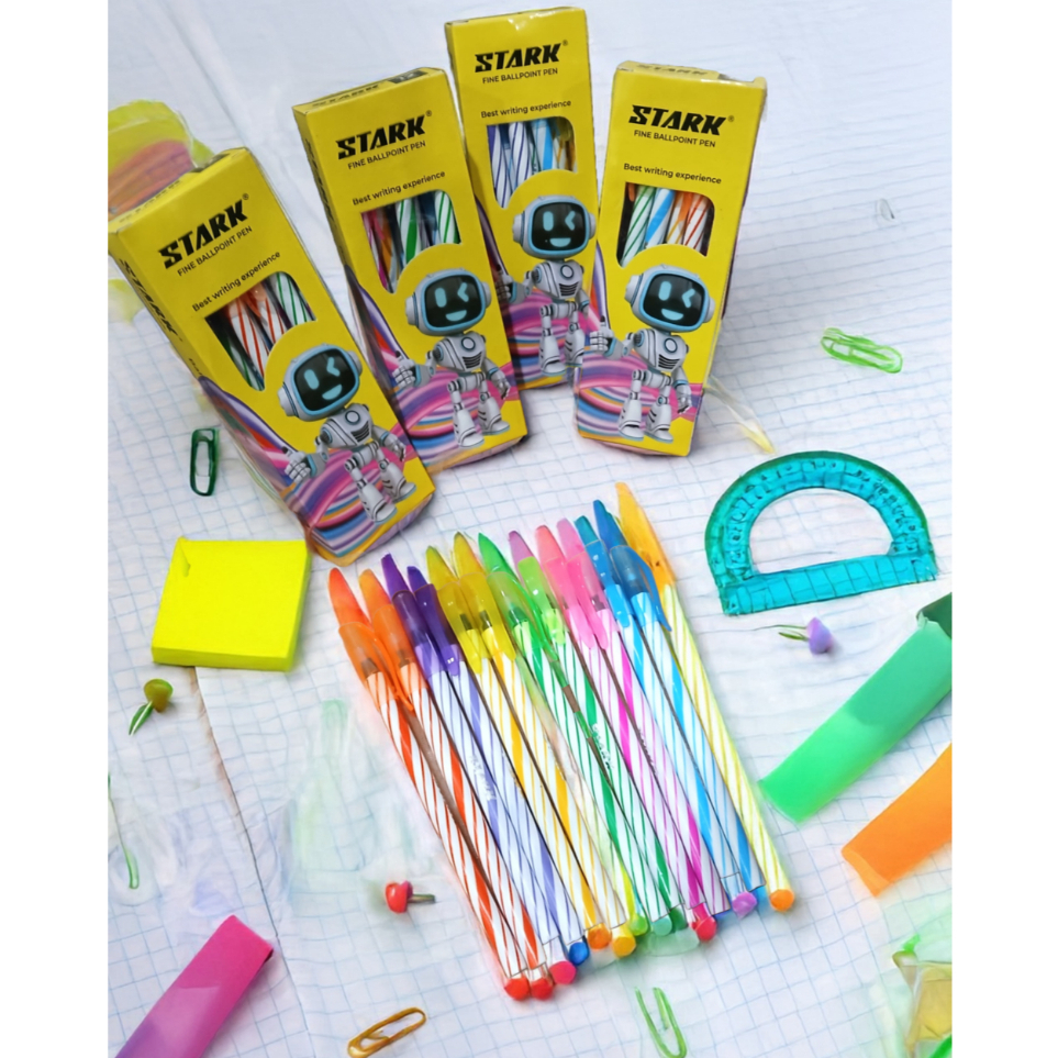 Pulpen hitam merk STARK merupakan pilihan tepat untuk kebutuhan menulis sehari-hari. Didesain dengan kenyamanan dan ketahanan, pulpen ini cocok digunakan oleh pelajar, mahasiswa, hingga pekerja kantoran. Tinta hitamnya pekat, tidak mudah luntur, dan cepat kering sehingga hasil tulisan terlihat lebih rapi dan profesional.