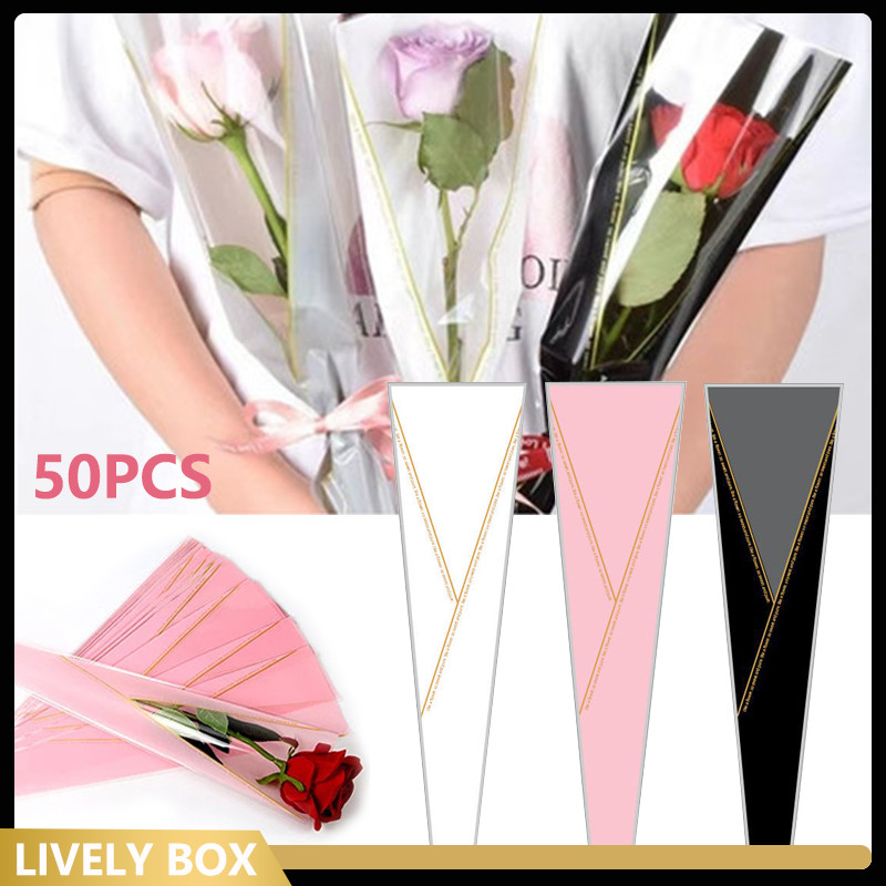 [ISI 50 LEMBAR] PLASTIK SINGLE FLOWER SINGLE STALK ROSE BUNGKUS PLASTIK BUNGA