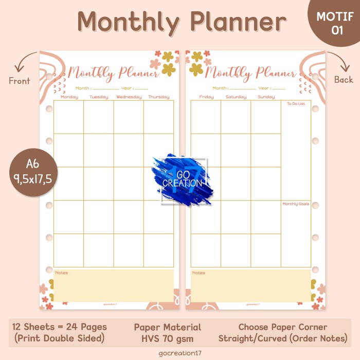 Gocreation17 (Create your plan and idea) Isi binder perencanaan yang ingin kamu catat untuk 12 bulan dengan desain dan motif yang unik