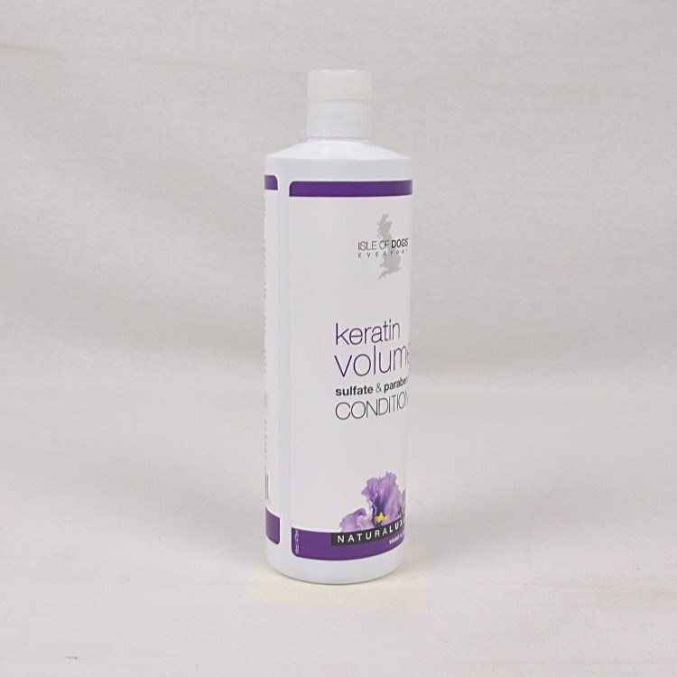 Our Keratin Volume Conditioner is a rejuvenating protein-based formula that helps to add volume and fullness, aides with combing the coat after a bath and also helps with releasing shedded hairs that may be caught in the coat. It helps make the brushing process much easier and reduces tangles. It also will help lay the coat down and give it that super soft and silky feeling.Ingredients :Purified Water, Cetostearyl Alcohol, Steralkonium Chloride, Dimethicone, Glycelyl Sterate, PEG 40 Castor Oil, Dimethicone Copolyol, Glycerin, Jojoba Oil, Aloe Vera Gel, Polysorbate 80, Panthenol, Oatmeal, Vitamin E, Keratin Protein, Fragrance, FD&C Red #33, FD & C Blue #1, DMDM HydantoinHow To Use : For optimum results first, shampoo the hair with Keratin Volume Shampoo. Work a good amount of this conditioner into the coat and let it remain for up to 5 minutes. Rinse thoroughly and dry.Can be diluted 5:1.Creating that full and fluffy, lush look and feel is much easier when using this conditioner in conjunction with the Keratin Volume Shampoo.