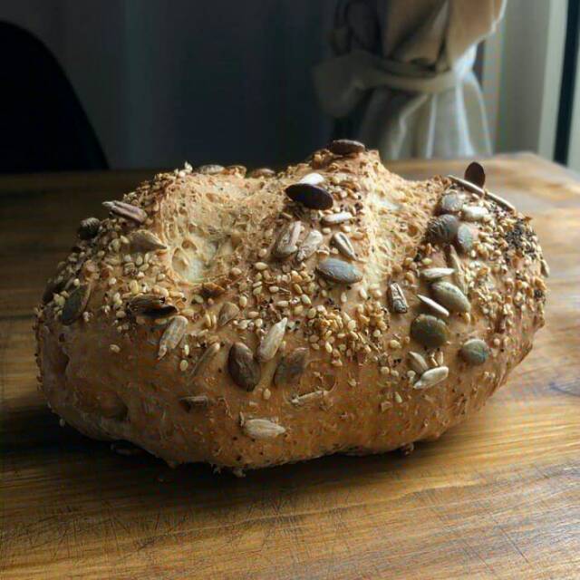 Roti yang terbuat dari gandum pilihan yang berkualitas dan biji2 pumpkin, wijen, bunga matahari.