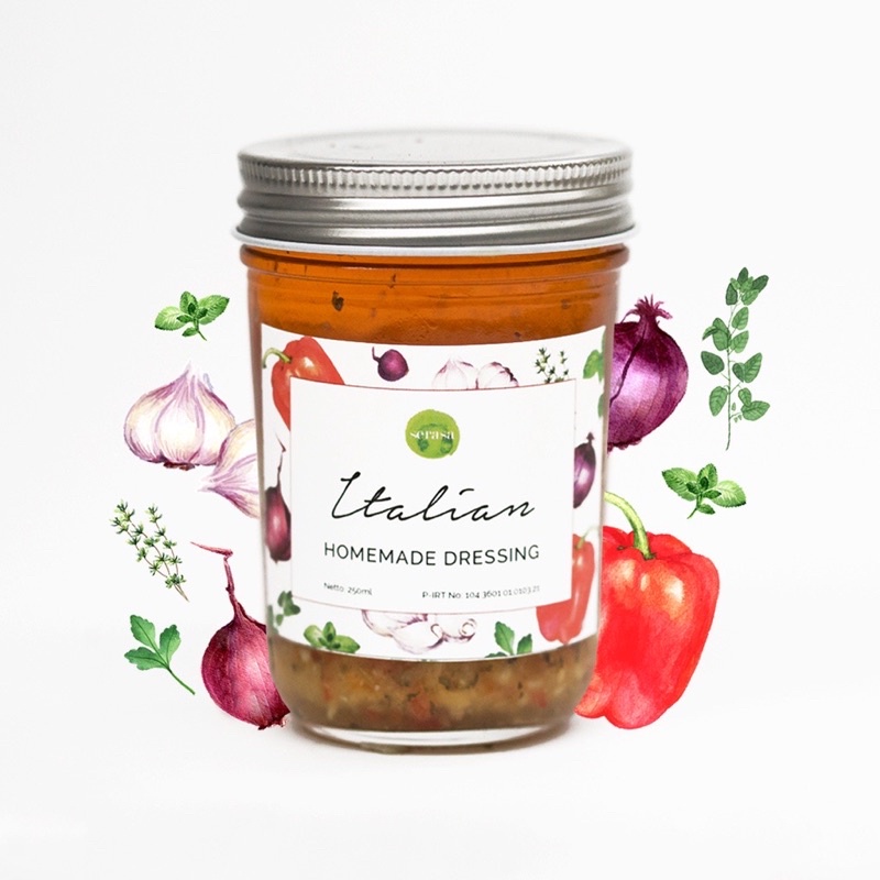 Bahan: olive oil, garlic, shallot, red, bellpepper, mix herbs, lime, vinegar, salt