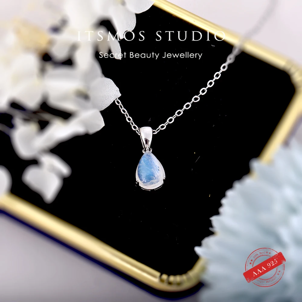 ITSMOS Moonstone s925 Серебряное ожерелье с подвеской, лечебные подарки, Минималистичная фотокапля, подарки для женщин