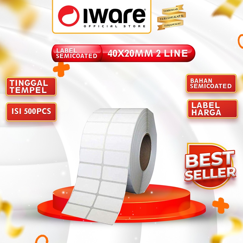 IWARE LABEL BARCODE 40X20 2 LINE KERTAS STICKER LABEL SEMICOATED 40x20 ISI 500PCS