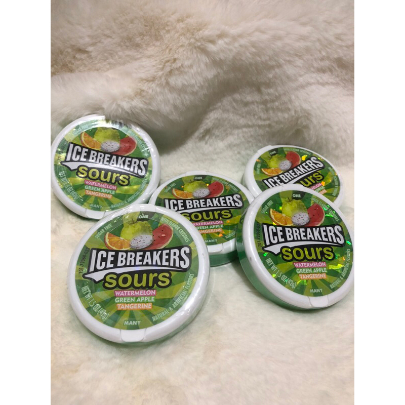 ICE BREAKERS Sours come in three great fruity flavors: Mixed Berry, Strawberry, and Cherry. Each of the eight tins in this box weighs in at 1.5 ounces and combines all three flavor crystal infused tastes for your lip-smacking enjoyment.
