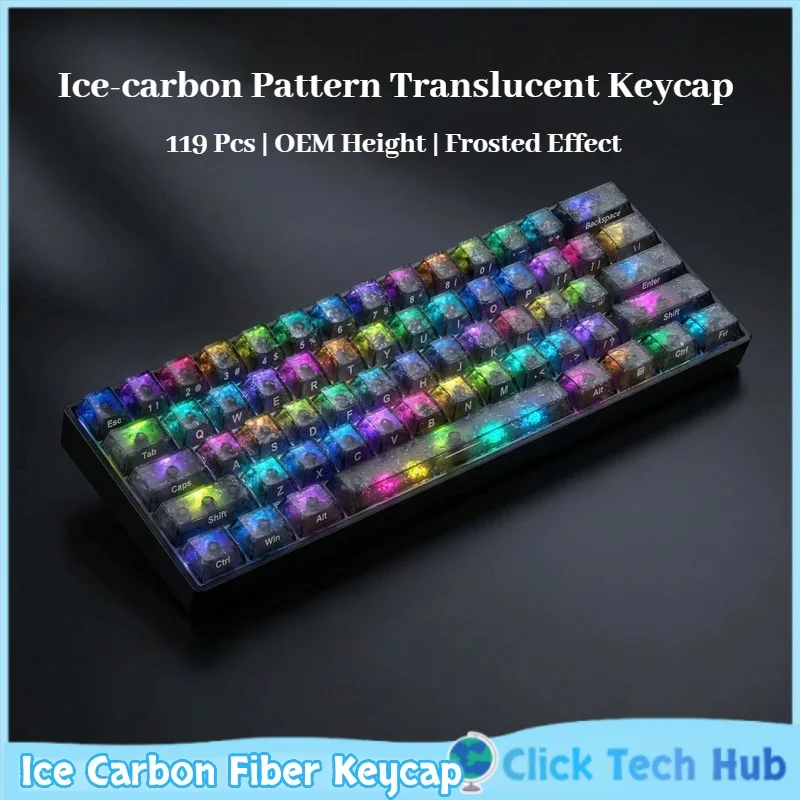 Ice-Carbon Pattern Carbon Fiber Keycap Side Engraving 119key Wooting Magnetic Switch Compatible Mechanical Keyboard Keycap