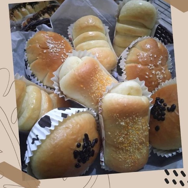 Roti mini dijual per paket isi 10 pcs dengan mix varian rasa. Choco, Cheese, Tiramisu, Blueberry, Butter Roll