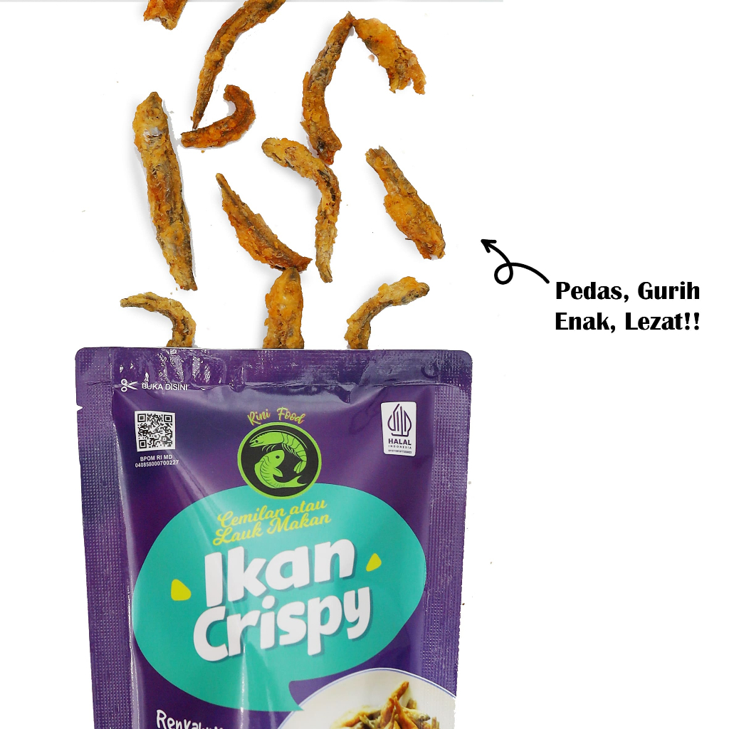 Cocok dinikmati sebagai camilan sehari-hari, lauk praktis, atau pendamping nasi. Ikan Crispy tersedia dalam dua varian rasa, original Dan pedas, sehingga sesuai dengan selera semua kalangan.