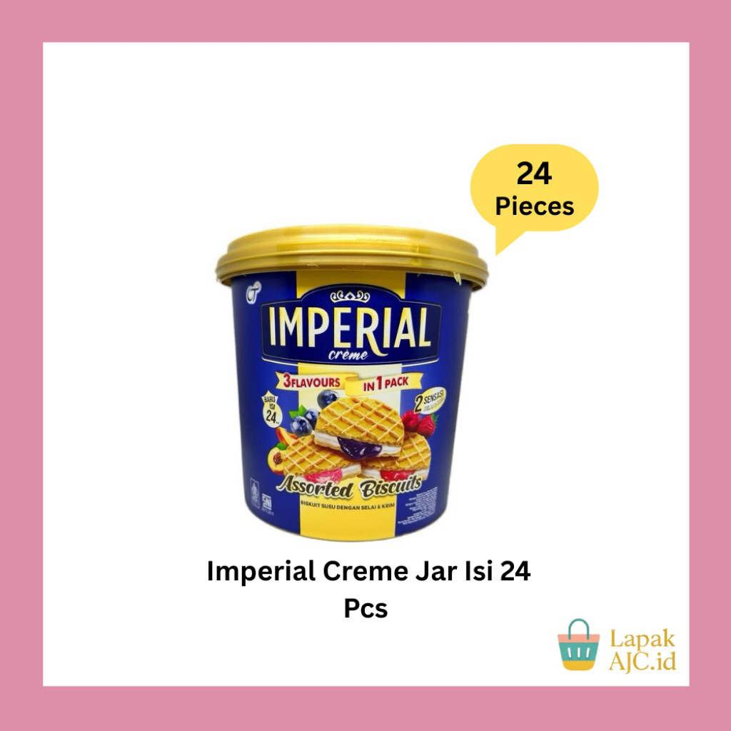 Imperial waffle creme jar adalah produk yang dijual dengan isi 24 pcs. Produk ini memiliki rasa yang beraneka ragam sehingga dapat memenuhi selera konsumen yang berbeda-beda. Keuntungan dari isi 24pcs pada produk ini adalah dapat digunakan untuk keperluan yang lebih banyak dan lebih hemat dibandingkan membeli satuan.
