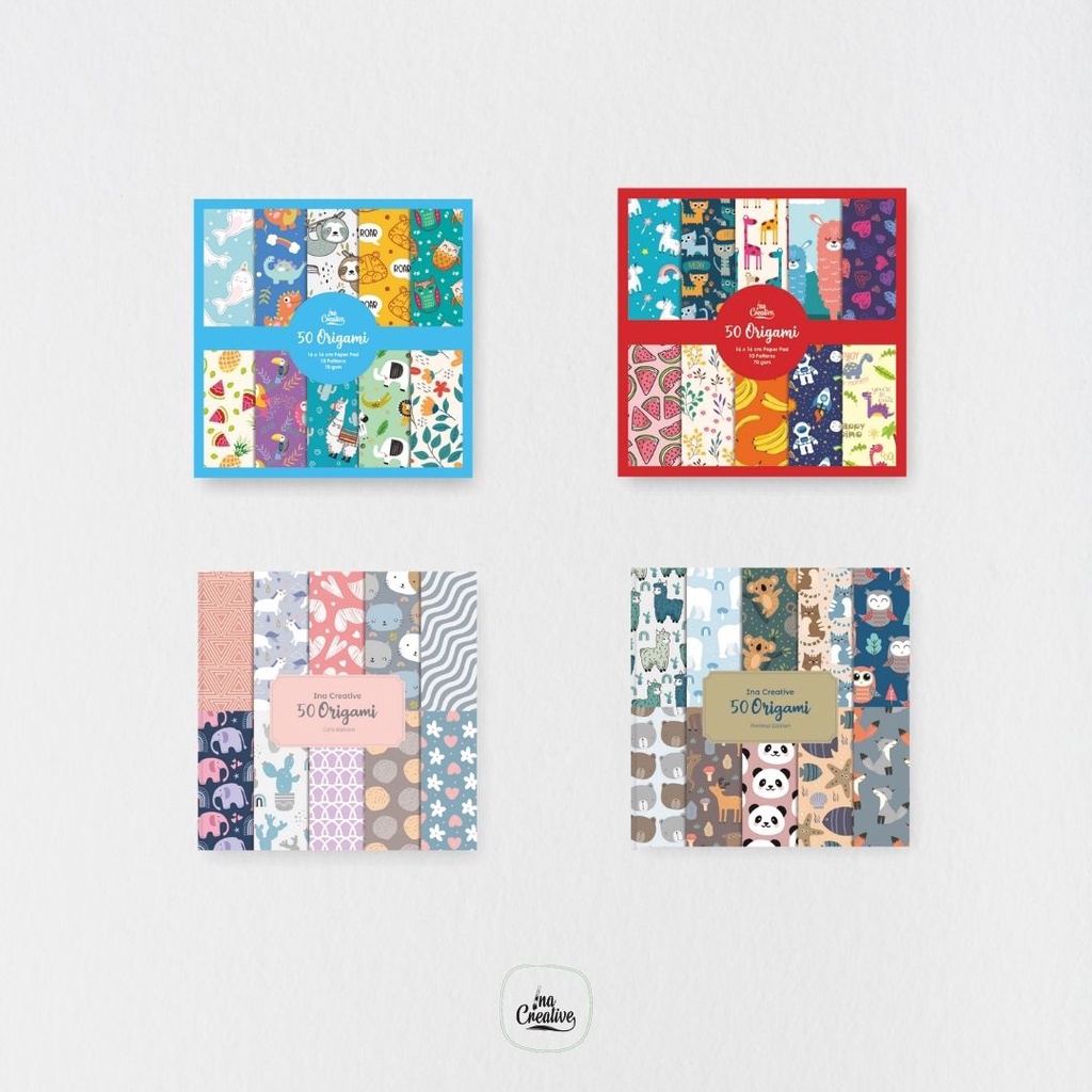 Ina Creative Origami 16 X 16| Kertas Lipat Bolak Balik 2 Sisi 16 x 16 CM | Kertas Lipat Motif Bolak - Balik