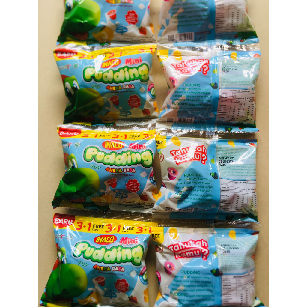 Setiap pembelian Inaco Mini Pudding Renceng Setiap Sachetnya Bonus 1 Cup (Jadi tiap sachet isi 4 Cup)