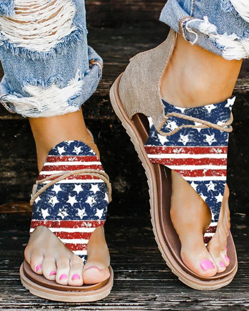 Independence Day Flag Pattern Toe Post Sandals, Multicolor