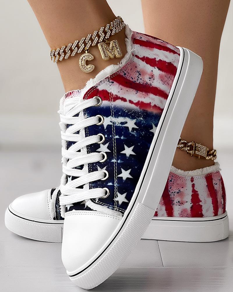 Independence Day Flag Print Fringe Hem Sneakers, Multicolor