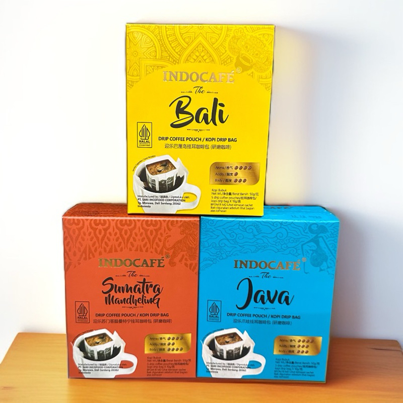 Indocafe Drip Coffee Pouch The bali Drip , Java Drip & Sumatra Mandheling