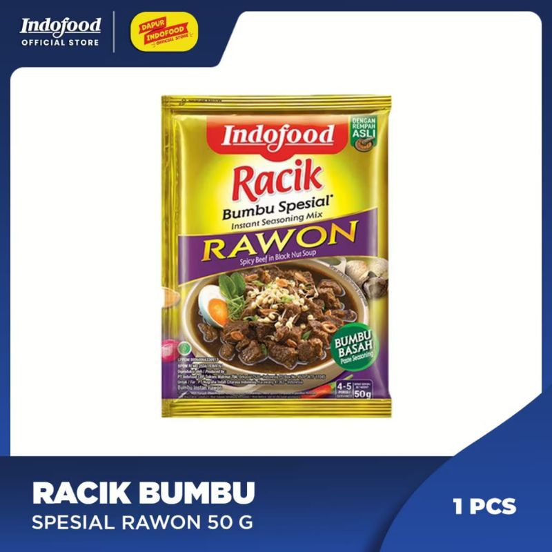 Indofood Bumbu Racik Rawon adalah salah satu bumbu instan yang dipersembahkan oleh Indofood yang lezat dan nikmat. Bumbu Indofood ini diracik dari perpaduan bumbu dan rempah-rempah alami yang segar. Perpaduan tersebut dihasilkan dari pasteurisasi yang menjaga kesegaran rempah. Tanpa dapur yang berantakan dan dengan waktu yang cepat, Anda dapat menyajikan rawon dengan kuah yang kaya rasa. Bumbu instan ini terjamin aman karena diracik tanpa bahan pengawet dan pewarna, serta mendapatkan sertifikat hahal dari Majelis Ulama Indonesia (MUI).