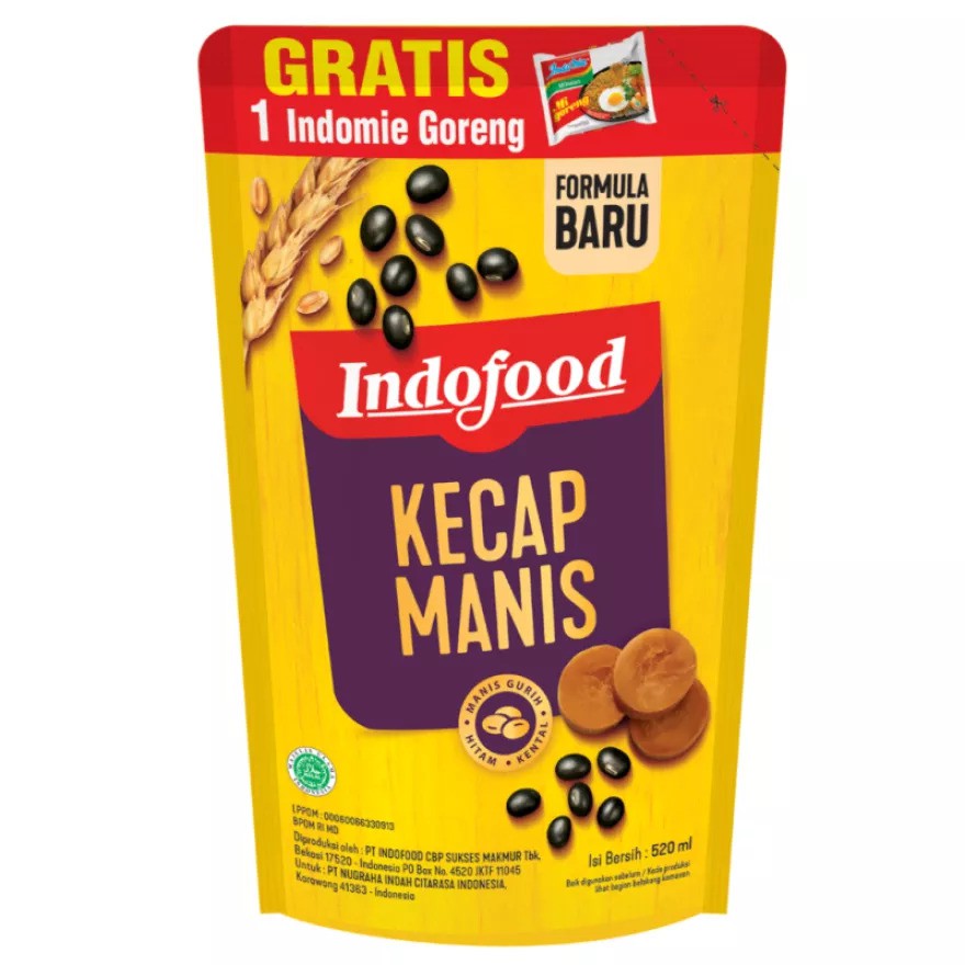 Kecap indofood dibuat dengan perpaduan sari kedelai asli dan gula aren murni untuk menghasilkan kualitas kecap manis yang kental, gurih dan kaya rasa. KOMPOSISI : Gula, air, gula aren (10%), sari kedelai (hitam 3%, kuning 2% mengandung gandum), garam, rempah-rempah.