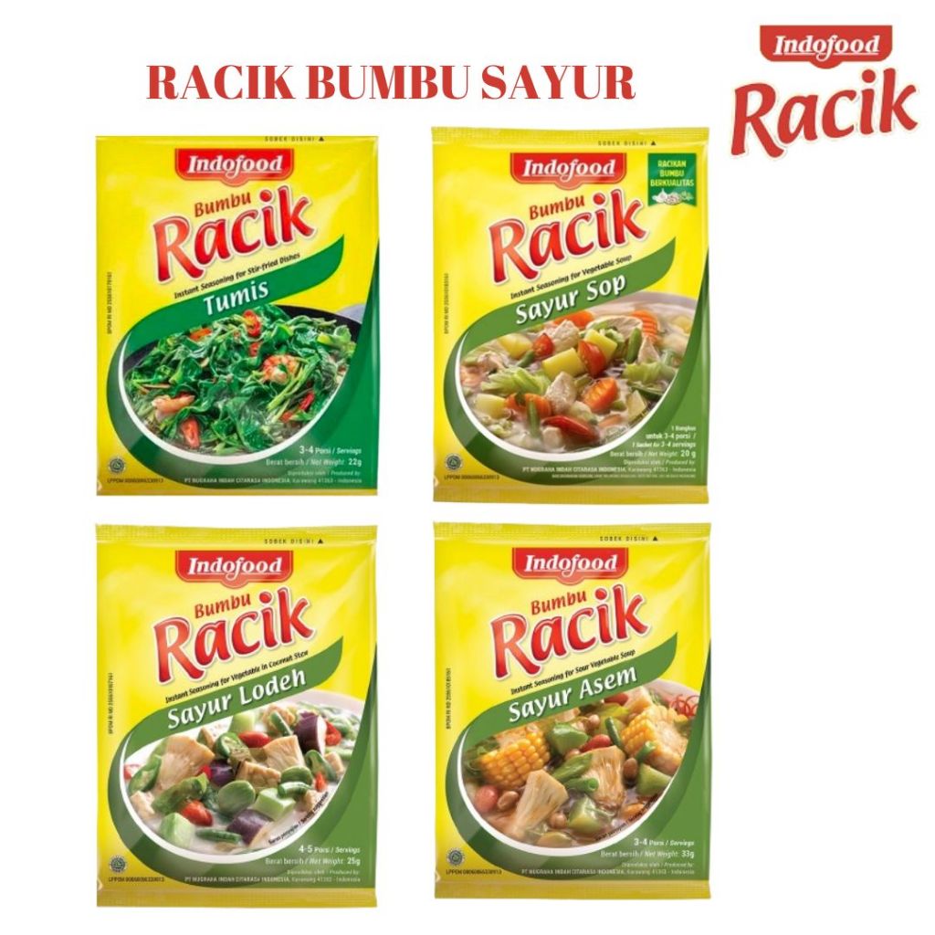 Bumbu Racik edisi sayur khas Indonesia, dengan racikan bumbu pilihan yang berkualitas dan bisa memenuhi kebutuhan ibu-ibu dalam membuat sayur lebih praktis dan mudah. Tersedia dalam empat jenis, yaitu : Sop, Tumis, Asem, Lodeh