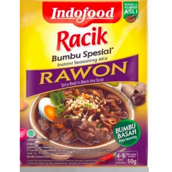Indofood Bumbu Rawon 50 gr merupakan bumbu instan untuk membuat rawon dengan - yang berkualitas dan menjadikan rasa hidangan anda nikmat. Diproses secara higenis dan praktis.