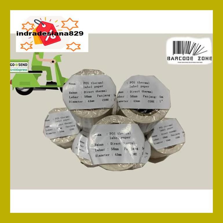 Label Thermal Continuous 58 x 6meter >> UNTUK PRINTER THERMAL