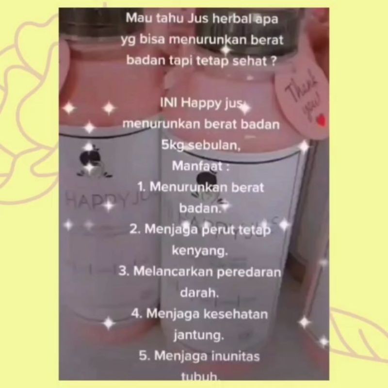 Ini Happy Jus merupakan jus kesehatan yang sangat aman dikonsumsi karena terbuaHappy Jus dipercaya dapat membantu mengurangi nafsu makan,