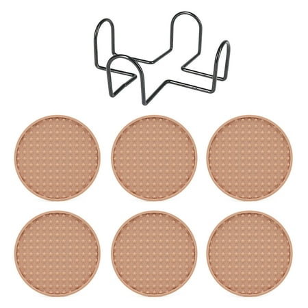 Wanwan 6Pcs Drink Coasters with Holder Anti-scald Sturdy Lightweight Round Non-slip Food Grade Pure Silicone Hot Coffee Cup Coaster Home Use