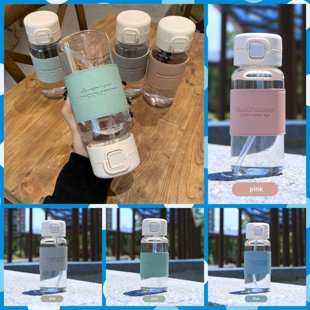 Insulation Sleeve Transparent Plastic Water Bottle With Straw Cups Portable Drinking Bottle Gift розовый