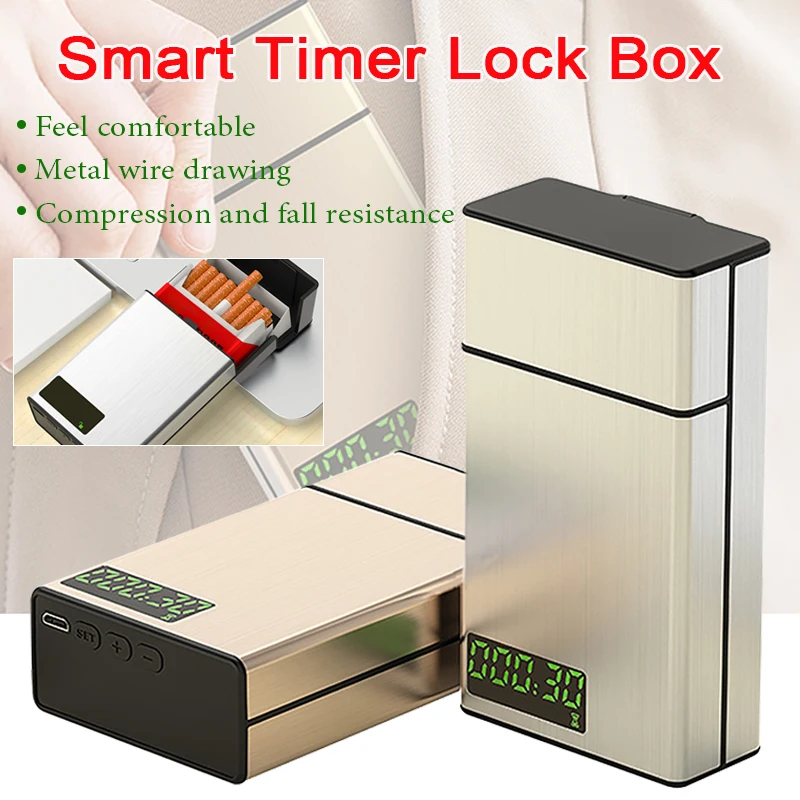 Intelligent Cigarette Case Timing Lock with LED Display Quit Smoking Control Device Aluminum Alloy Self-Discipline Lock Box
