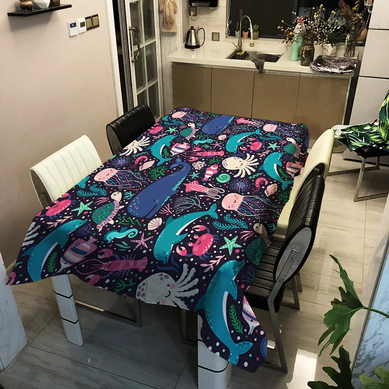 Interesting Tortoise Pattern Rectangular Tablecloth Waterproof and Oil Proof Table Cover Is Suitable for Home Party Manteles