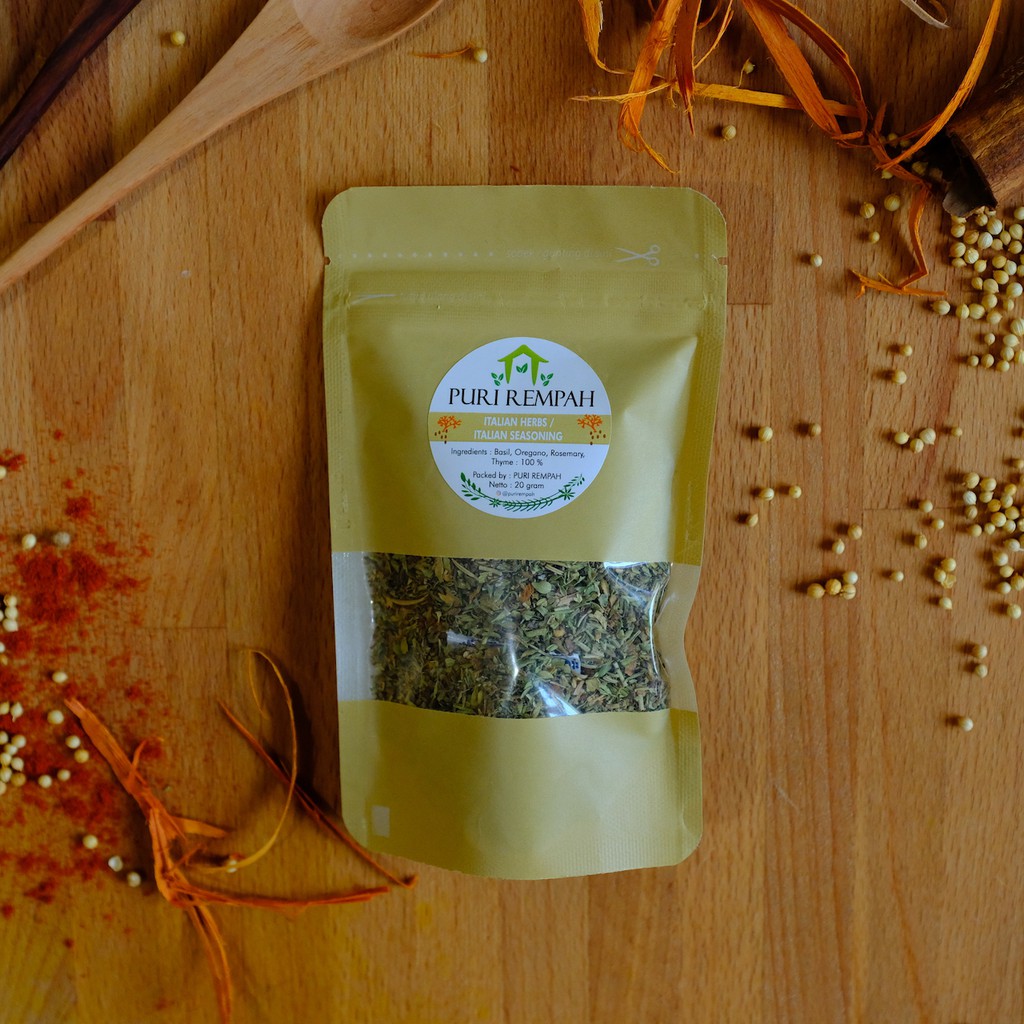 Italian Herbs merupakan bumbu untuk masakan khas Italia, seperti Pasta, Pizza, Spagheti dan aneka masakan Italia lainnya, dan juga untuk panggang ayam.