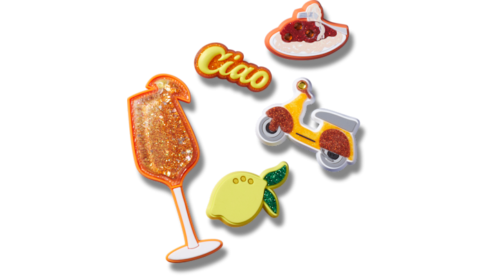 Pop some personality into your shoes with these Italian Summer 5 Pack Jibbitz™ charms. They’re the perfect addition to your favorite pairs of clogs, slides, and more.Not a toy. Not intended for children under 3 years of age.