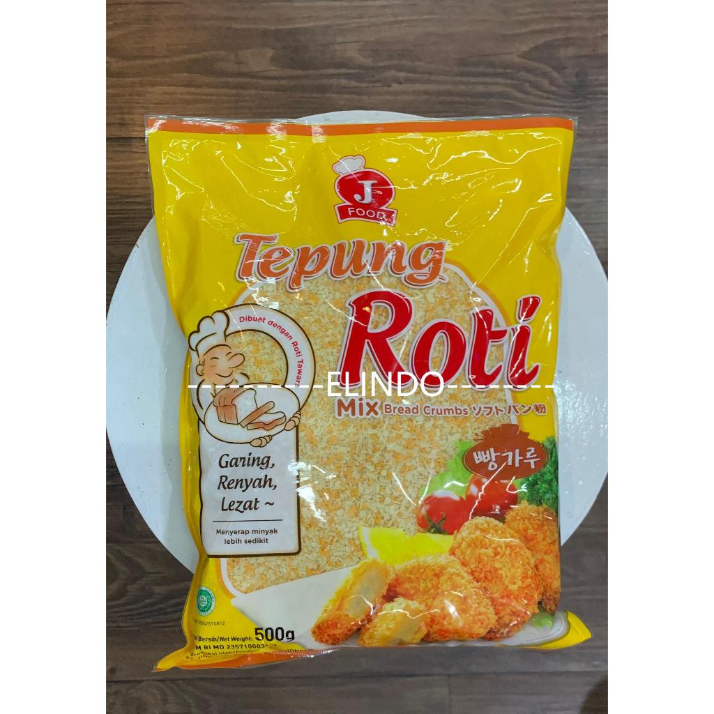 epung roti mix J Food adalah tepung roti yang terbuat dari roti tawar panggang dan dikeringkan, dengan tekstur ringan dan renyah. Tepung roti ini memiliki warna kombinasi kuning dan jingga, dan dapat digunakan untuk melapisi berbagai makanan gorengan, seperti: