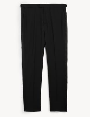 JAEGER Mens Slim Fit Italian Pure Wool Tuxedo Trousers - Black, Black