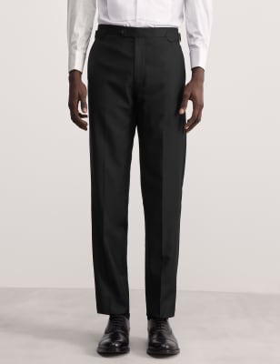 These tuxedo trousers from Jaeger are made from soft pure wool for a luxurious feel. They're cut to a sleek tailored fit, with a flat front for a crisp look. The fabric has a subtle textured weave and the piece is neatly finished with a hook bar and zip fastening, as well as adjustable side tabs. Wear with the matching jacket for a refined evening outfit.