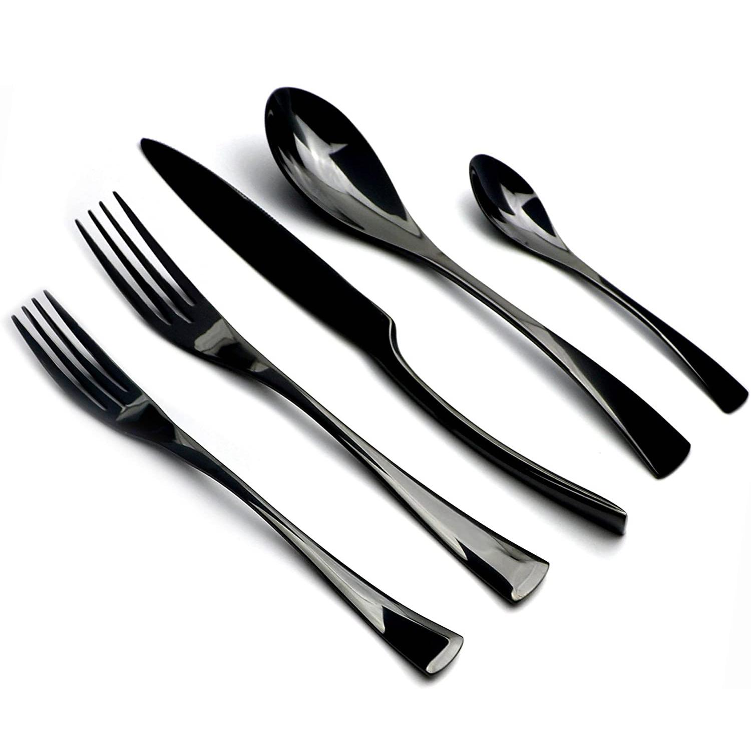 JANKNG, 20 предметов, 18/10, набор посуды из нержавеющей стали, зеркальная полировка, черный серив для 4 тяжелых современных ножей, набор ложек, вилок, кухонная утварь чёрный