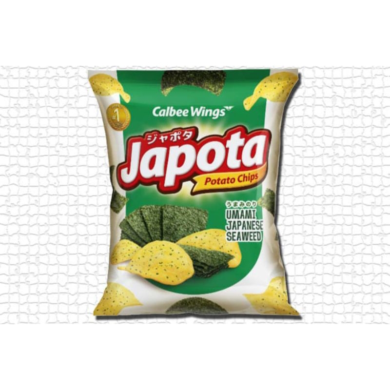 Japota adalah snack potato chips terbaru dari Calbee Wings yang terbuat dari kentang asli, diolah menggunakan thin-cut technology sehingga membuat chips Japota asli krenyesnya! Japota juga mengandung taburan bits asli yang membuat rasanya lebih enak. Dijual per bungkus bernetto 35 gram per bungkusnya. BerBPOM dan Halal MUI.