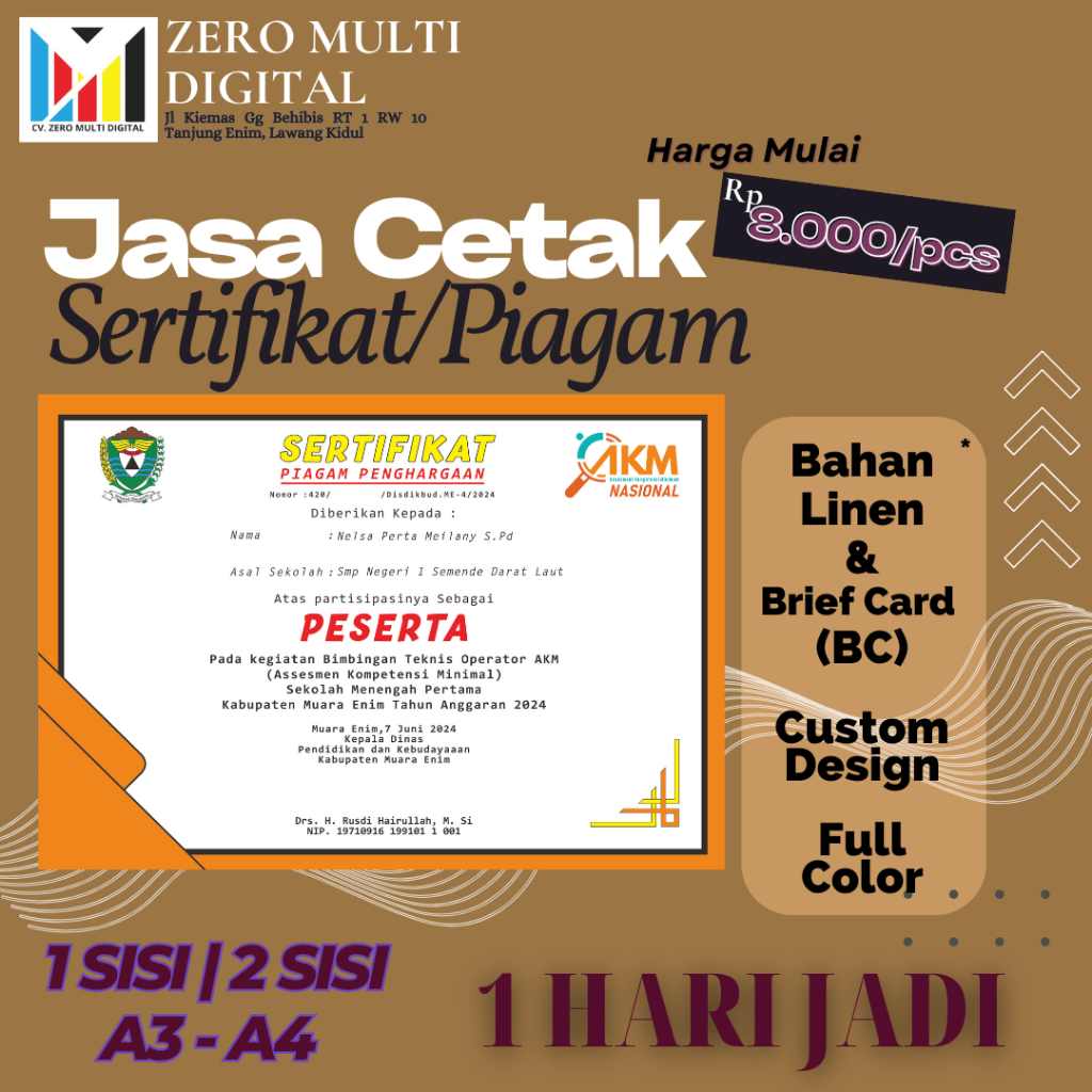 [JASA BUAT & PRINT] ZERO SERTIFIKAT 1 2 SISI FREE DESIGN HASIL TAJAM RAPI DAN BERKUALITAS