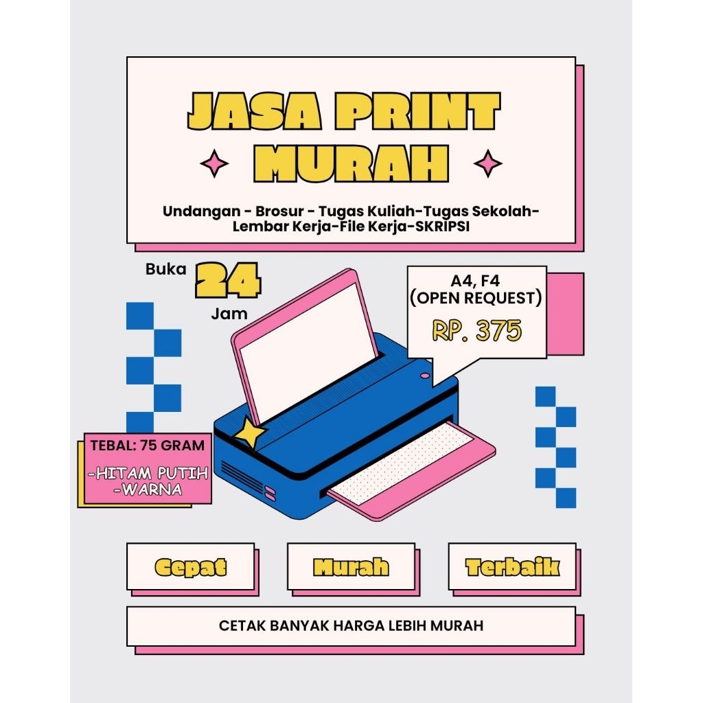 siap print tugas sekolah, tugas kuliah, skripsi, makalah, CV juga Oke banget.