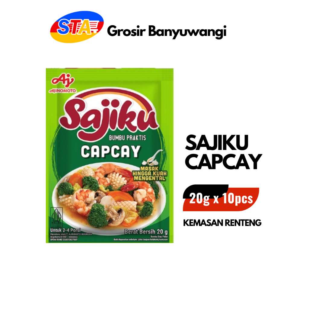 Sajiku Bumbu Sayur Capcay adalah bumbu praktis yang dibuat dengan bumbu & rempah pilihan, menghasilkan Capcay dengan kuah yang kental tanpa tambahan maizena.