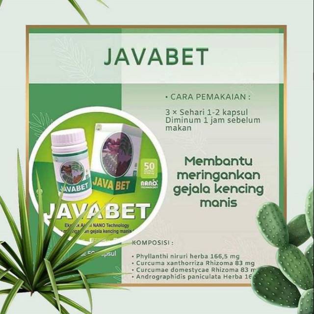 Javabet Obat Herbal khusus diabet yang berteknologi NANO dengan bentuk kapsul, perbotol isi 50 kapsul.