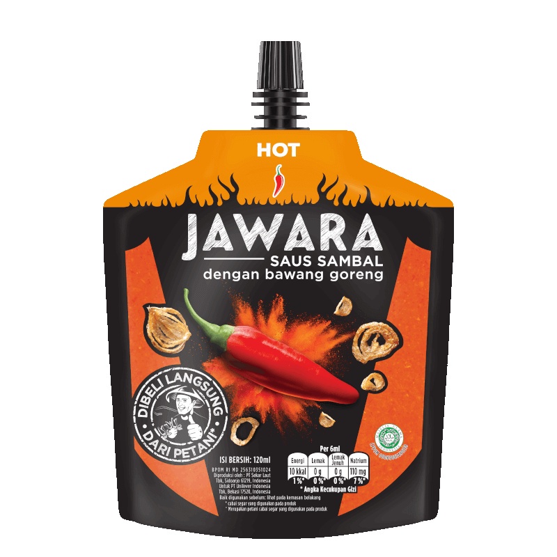 Jawara Saus Sambal Extra Hot yang terbuat dari cabai segar pilihan dan bawang goreng berkualitas tinggi.